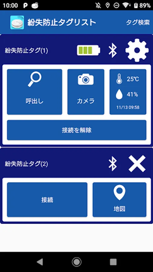 ● Tag from smartphone, call smartphone from tag button (lost prevention)