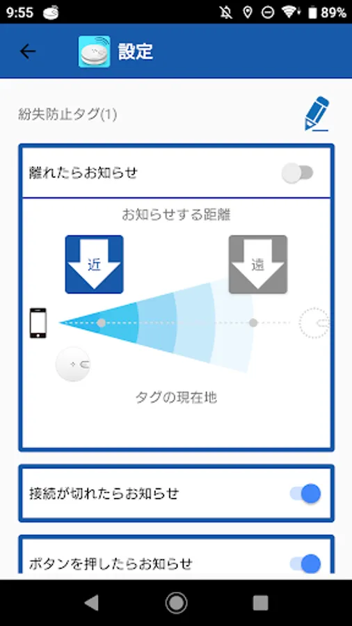 ● Notify when the smartphone and the tag are separated from each other (prevention of misplacement)