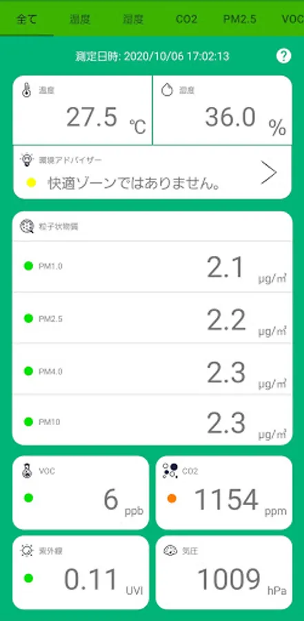 It is an application that displays the measured values and graphs of temperature, humidity, CO2 concentration, PM2.5 concentration, VOC concentration, barometric pressure, and UV index measured by the Wi-Fi environment sensor RS-WFEVS1 of Ratoc Systems.