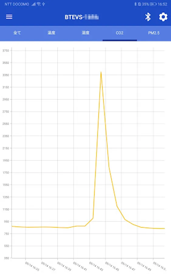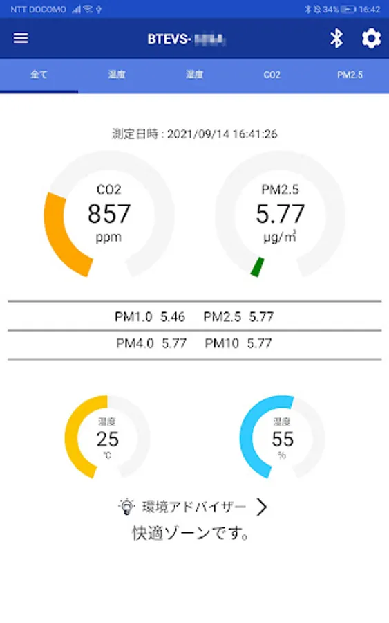 It is an application that displays measured values and graphs such as temperature, humidity, CO2 concentration, PM2.5 measured by Ratoc System's Bluetooth environment sensor "RS-BTEVS1".