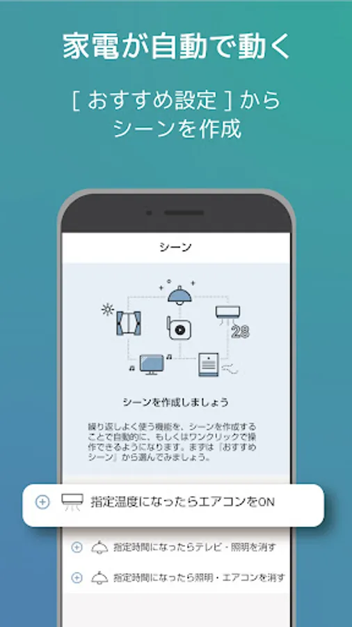 ・ Operate home appliances at the set "time / temperature / humidity / location (home)"