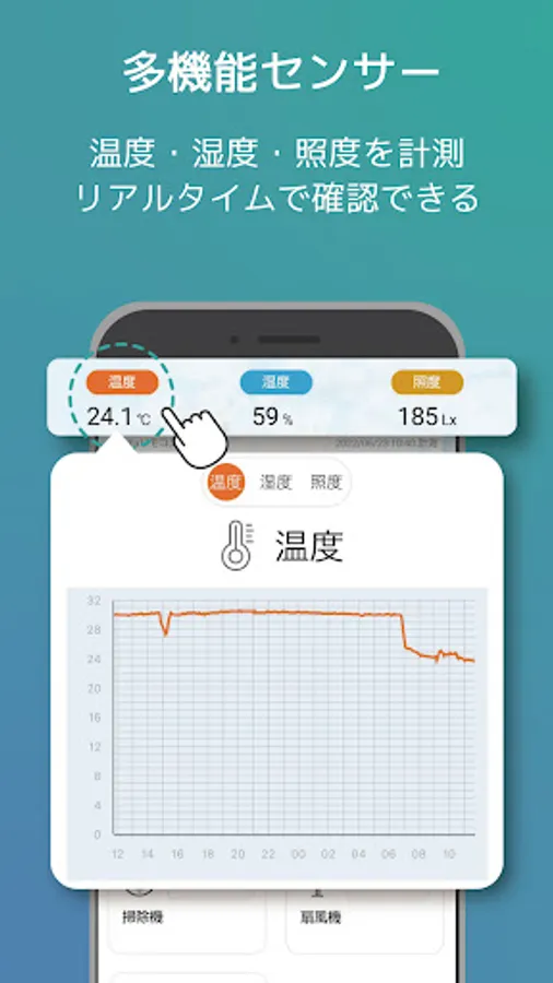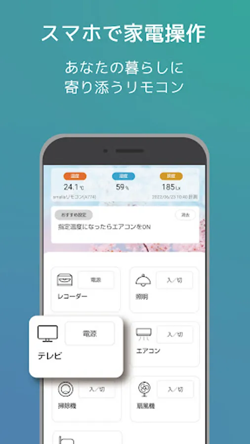 Turn on the air conditioner before returning home, operate the TV by voice, and turn on the lights at a fixed time. You can also check the temperature and humidity and brightness of the room with the built-in temperature / humidity / illuminance meter.