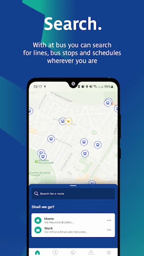 With at bus you can plan your trip, save places, stops and lines, check the status of services and buy all our tickets and passes.