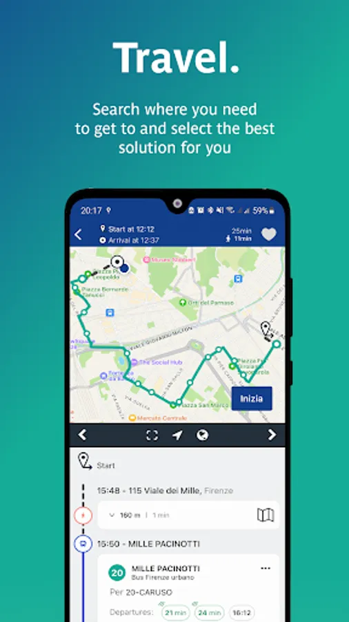 - Search where you need to get to and select the best solution for you; the app will notify you when it’s time to depart