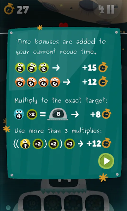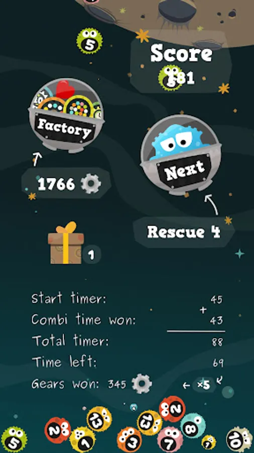 If you are not fast enough and a Numblie lands over the top line OR your timer reaches 00, the rescue has failed, and the Numblies will get lost in space forever.
