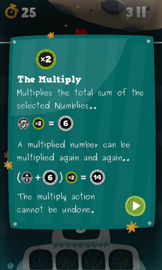 In each level, random Numblies (numbers) will be falling constantly into the screen. Your goal is to select Numblies and reach a total sum, equal to the target number that appears inside your spaceship.