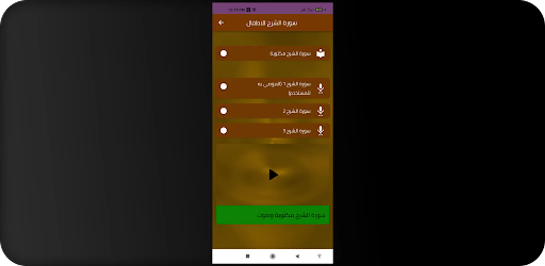 يمكنك التنقل بين أزرار تطبيق سورة الشرح للاطفال بسهولة