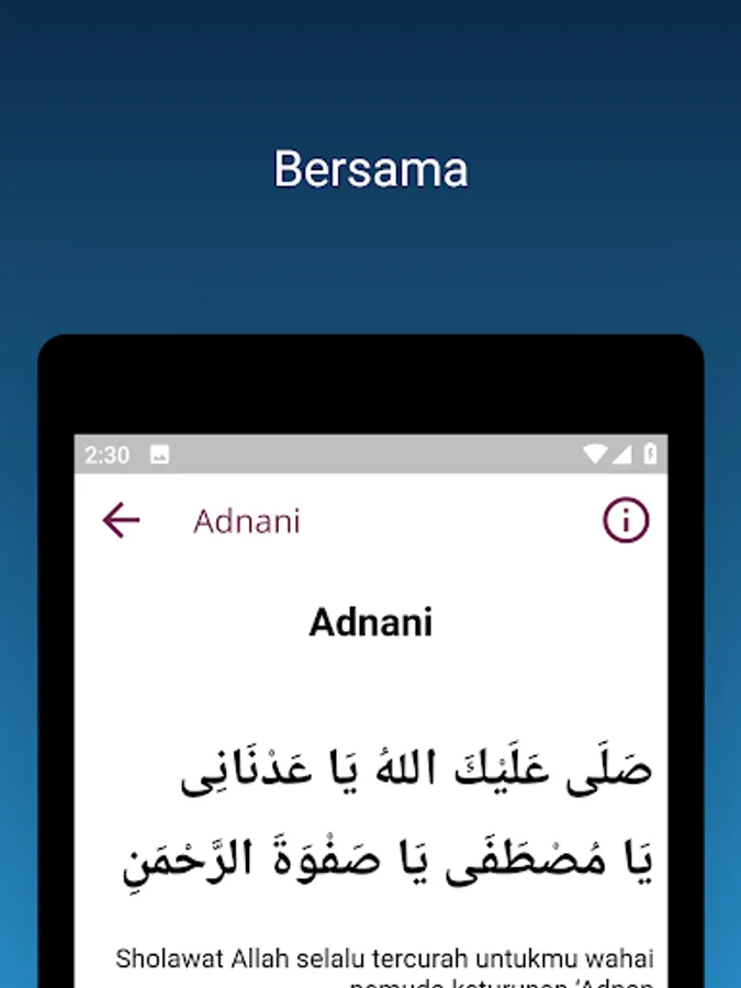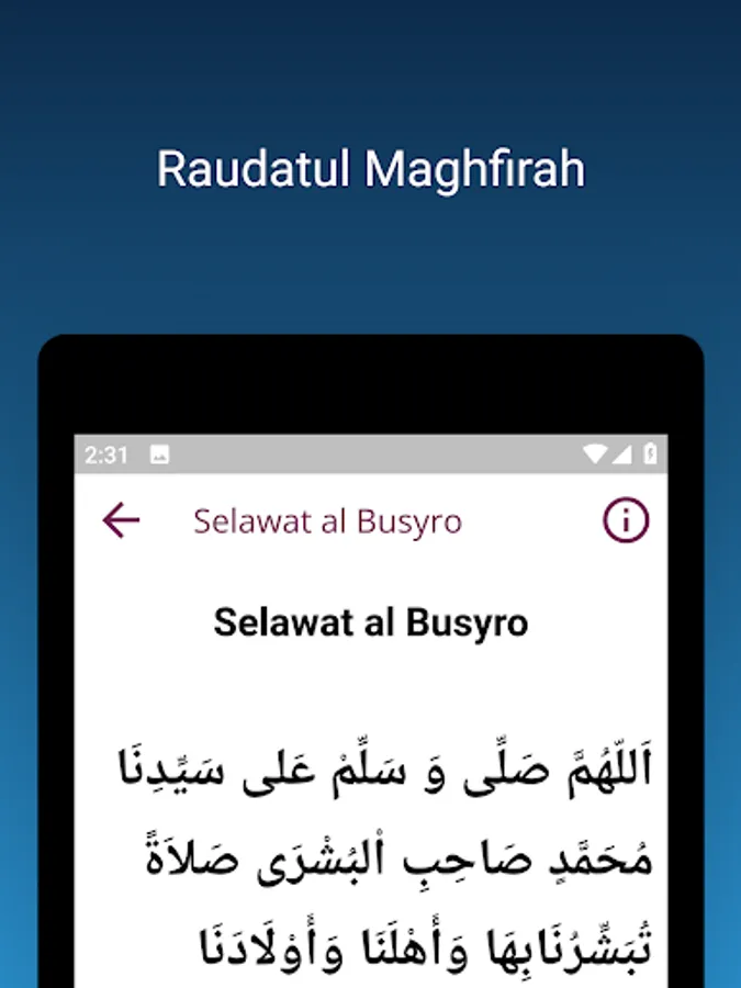 This qasidah selawat application was developed to make it easier for the participants of the Missing Messenger of God's Love program with Raudatul Maghfirah to pray together.