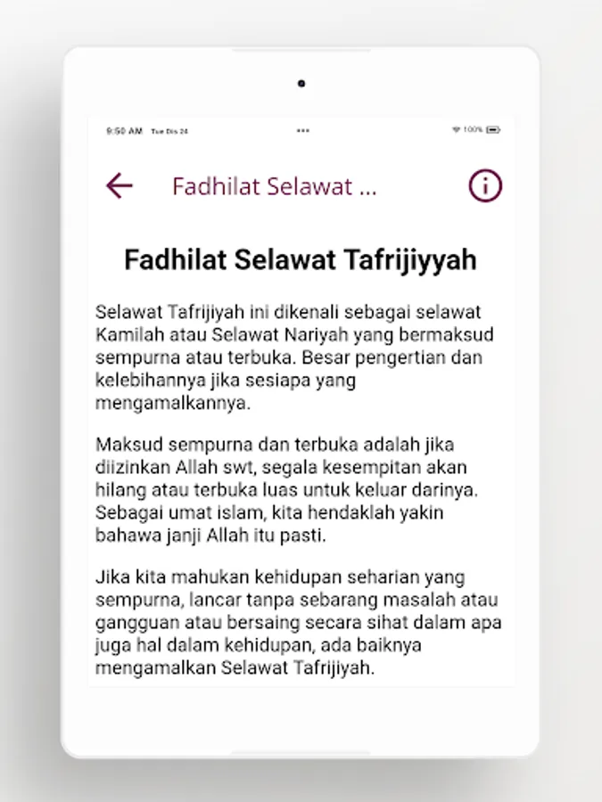Selawat Tafrijiyyah or also known as Selawat Nariah or Selawat Kamilah is one form of sighah recitation or practice of praying to the great leader of the Prophet Muhammad SAW compiled by scholars who are sourced from ijtihad or spiritual inspiration from Allah SWT.