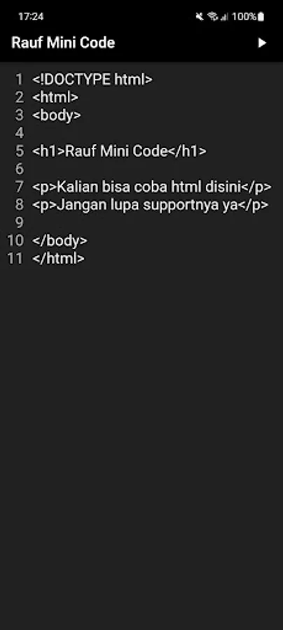 Rauf Mini Code is a code editor application for html. This application is suitable for those who are just learning html because they can use it anywhere and anytime using a smartphone