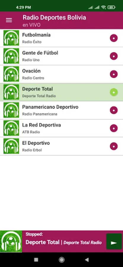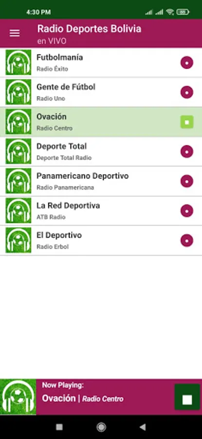 Radio Deportes Bolivia LIVE. Listen to all the live broadcasts of the First Division football matches in Bolivia as well as the Copa Libertadores, the Copa Sudamericana and the Qualifiers. Choose the Radio and Rapporteur that you like the most or that most identifies with the colors of your shirt.