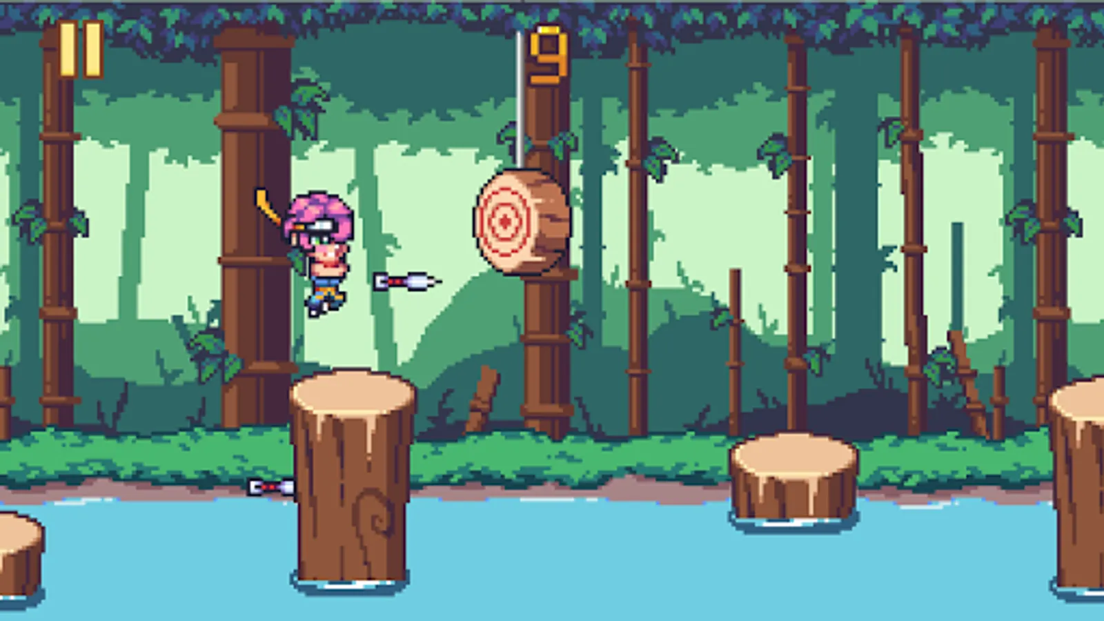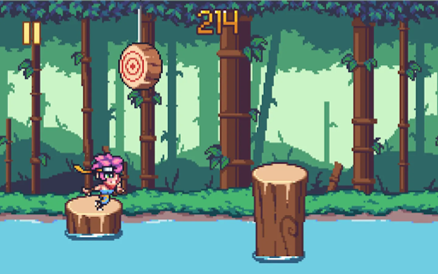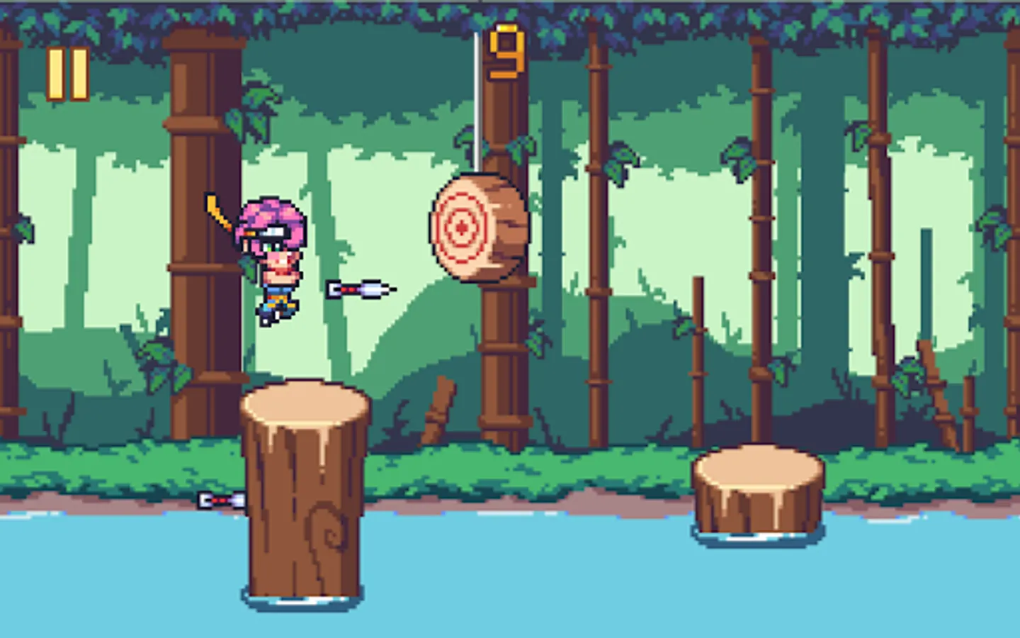 Join Magenta on a ninja adventure as she trains to be the best ninja alive! jump and double jump from log to log and throw ninja stars at targets to improve your score! She will be queen of the Ninjas! Believe it.