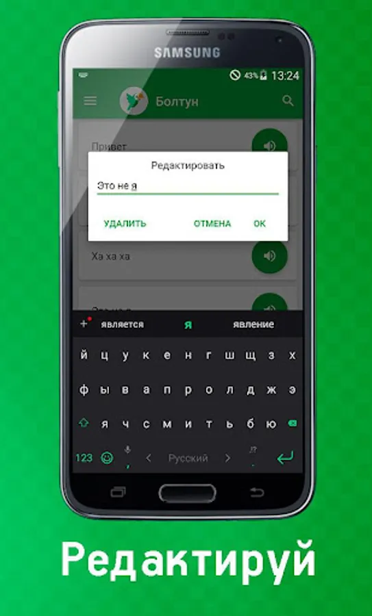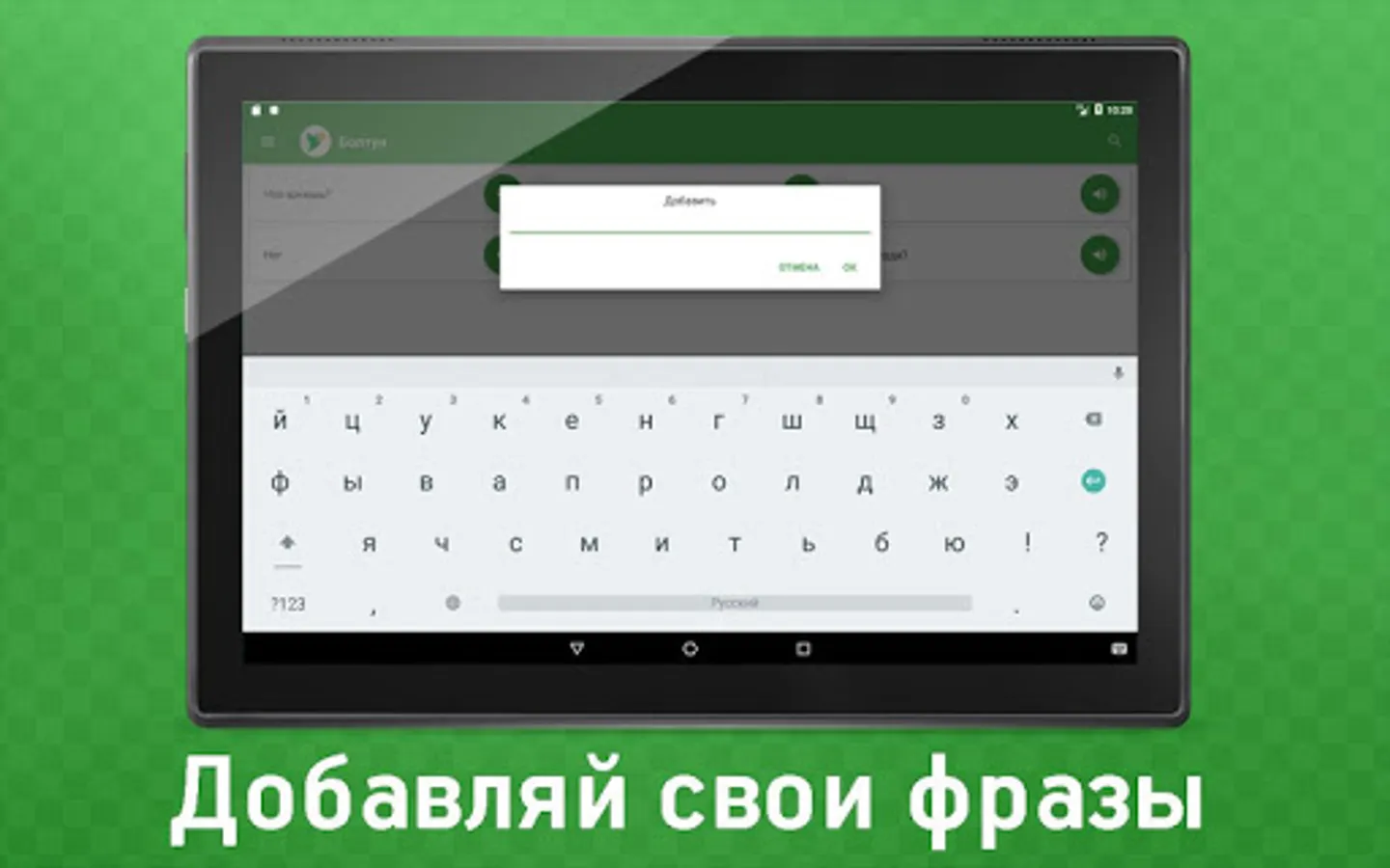In essence, this is just a text-to-speech synthesizer, there is nothing superfluous. Add your own phrases and when you press the text pronounces the voice, that's all that is in the application.