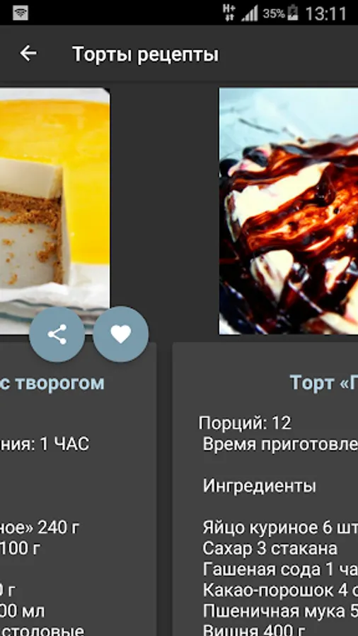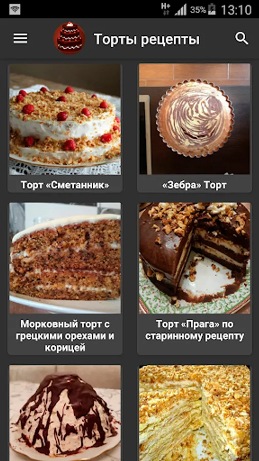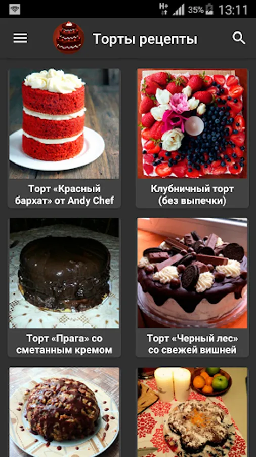 The application "Cakes Recipes" is conveniently designed so that you can easily find exactly the cake recipe that you need through the built-in search in the application.