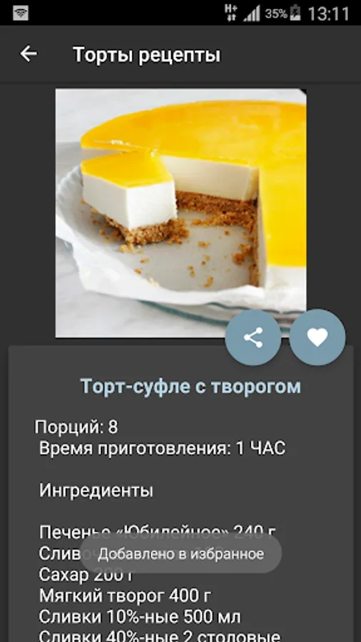 You can add your favorite cake recipes to your favorites, and you can also share cake recipes through the app with your friends.
