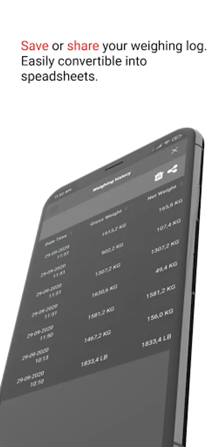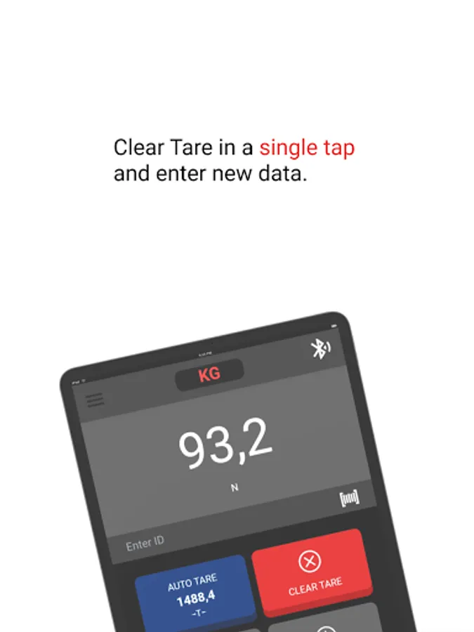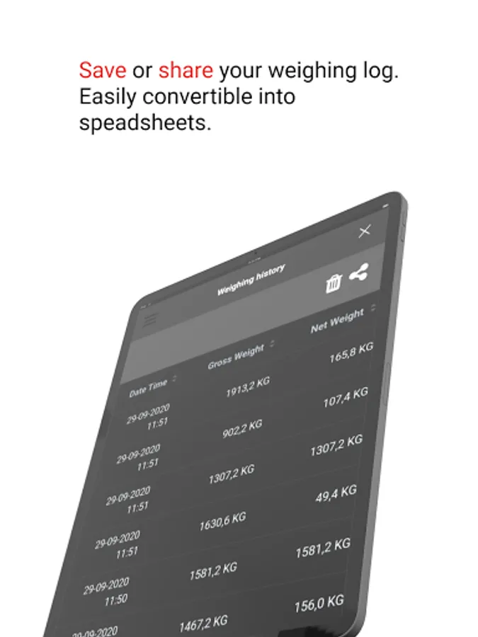 In short, a handy tool to read weights and efficiently save weighings with date, time, and tare values.