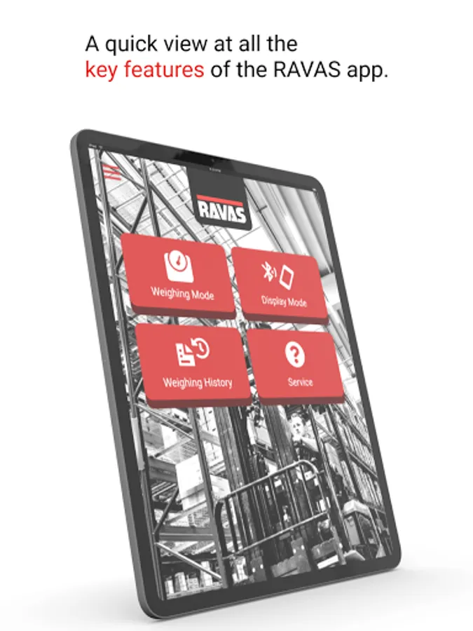 RAVAS WeightsApp is a free App for Android tablets and smartphones. The App from RAVAS gives the user a simple tool for efficiently processing and storing the weighted weights including product code, date & time and tare values.