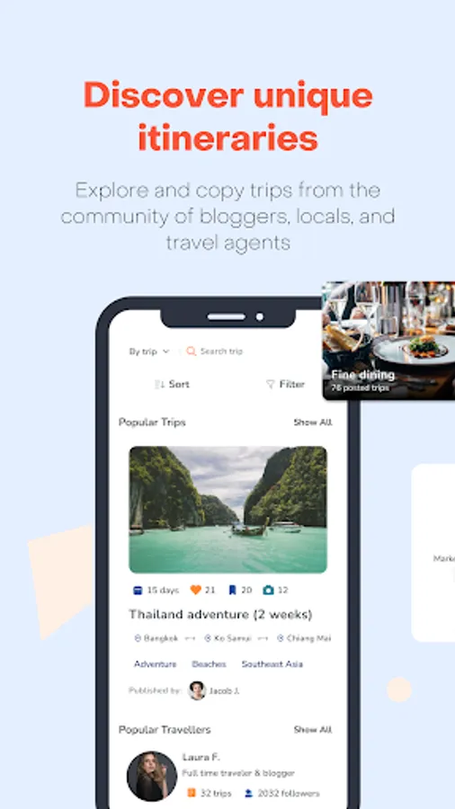 Browse trips published by the community of bloggers, travel agents, and other travelers. Follow your favorite travelers around the world.