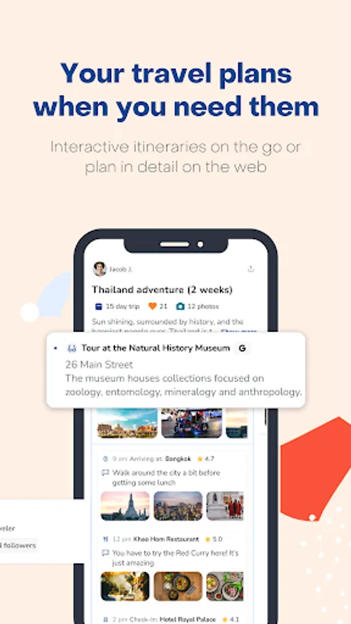 Add your photos and blog in your itinerary and publish your trips to the community to help other travelers get inspired! Easily share on other platforms.