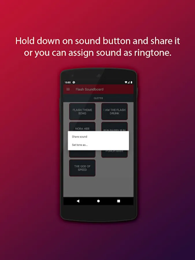 Flash soundboard application contains various sounds and quotes of him. Also you can set as ringtone, notification tone or alarm tone these Flash quotes, sounds. Enjoy it