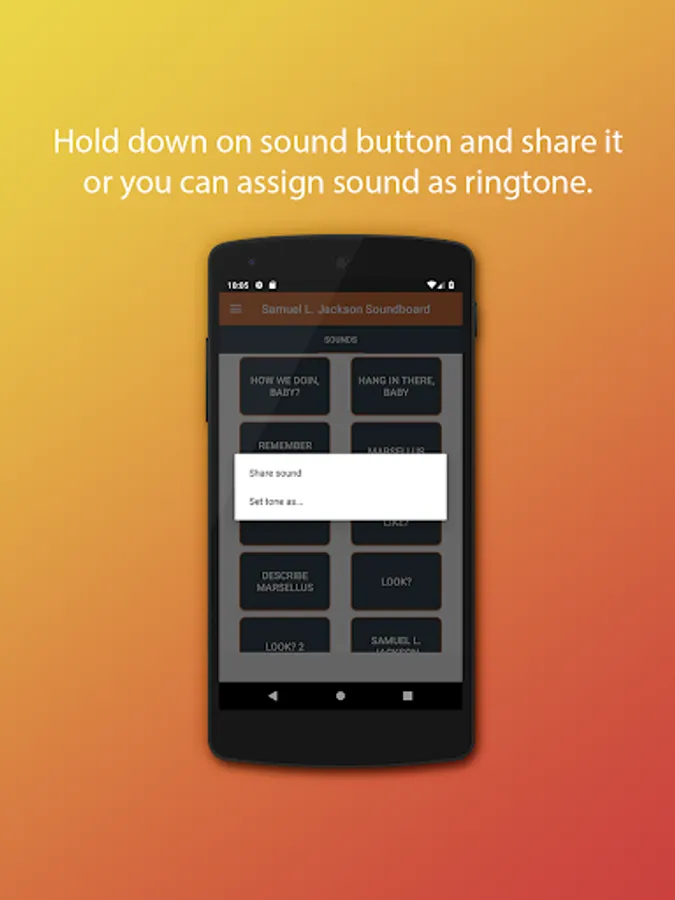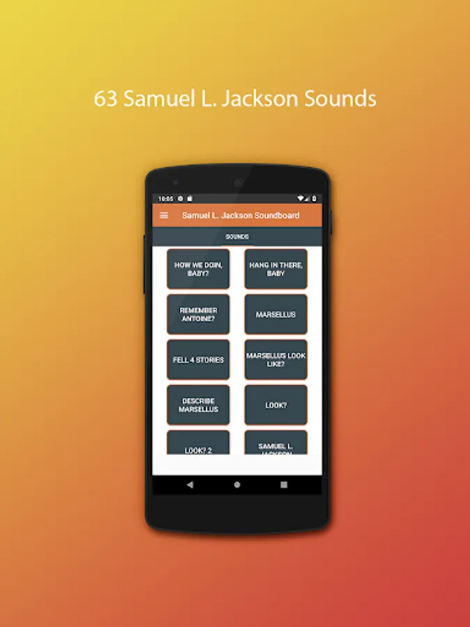 Samuel Jackson soundboard application contains various sounds from Samuel Jackson. Also you can set as ringtone, notification tone or alarm tone these Samuel L. Jackson sounds. Enjoy it