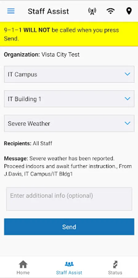 For lower-severity issues not requiring a 9-1-1 call, you can use the Staff Assist feature to notify on-site individuals only. Using Staff Assist will not automatically dial 9-1-1.