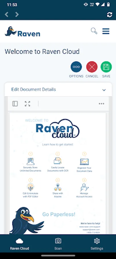 Raven is the all-in-one scanner app that will turn your phone into a PDF scanner while performing OCR and providing unlimited secure cloud storage. Easily search and access your documents on the go with Raven Cloud - all for FREE!