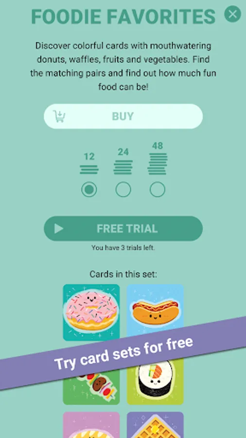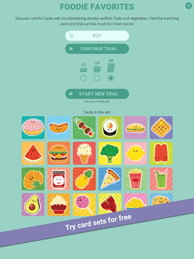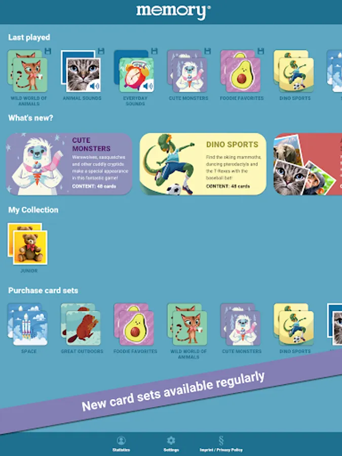 The Ravensburger memory® app offers many new and classic card sets. New sets are regularly added and can be tried out for free.