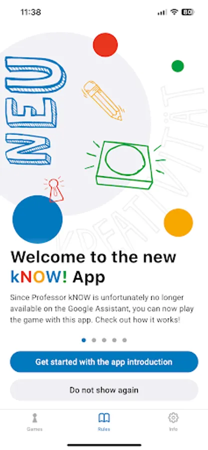 Welcome to "Ravensburger Professor kNOW!", the companion app to the "kNOW!" board game. This app replaces the Google Assistant Action on the Google Smart Speakers, which will be or was discontinued by Google at the end of June 2023.