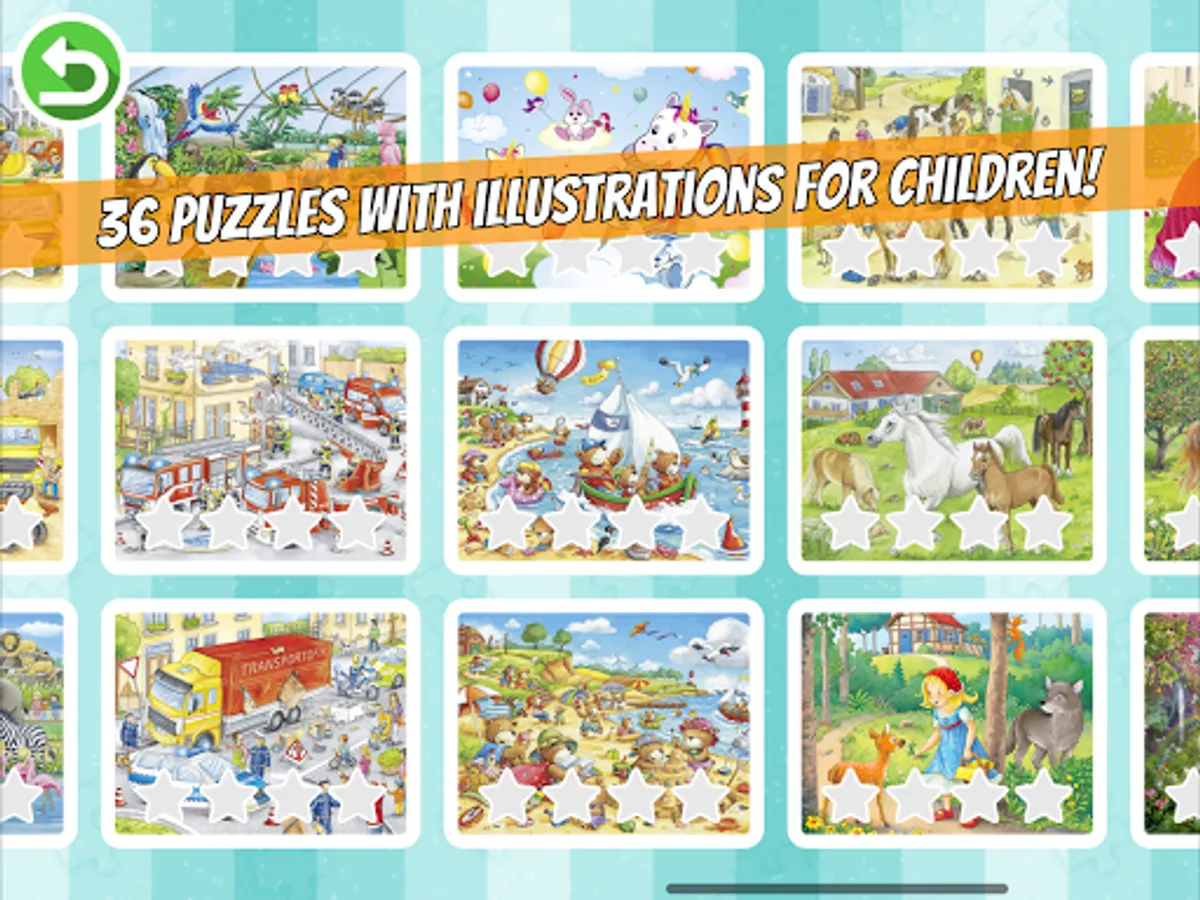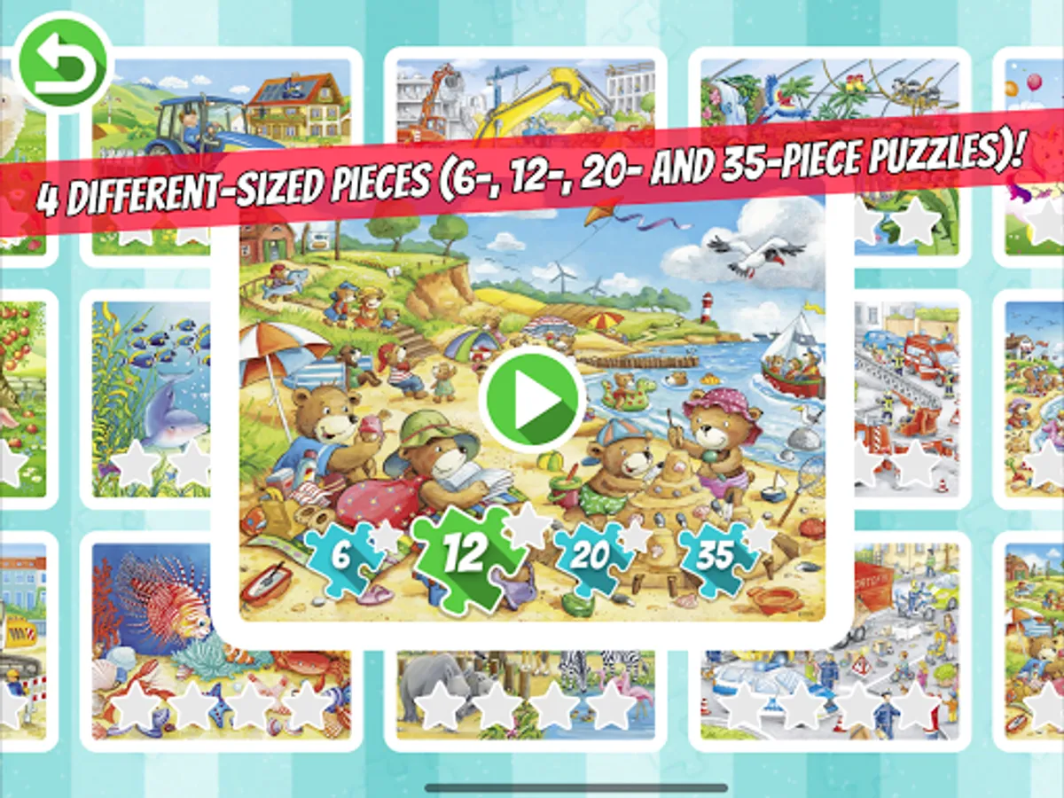 With the "Ravensburger Puzzle Junior" app, young puzzle fans can enjoy their first puzzle experience. The abilities of preschool children have been carefully taken into account: the puzzle pieces cannot be accidentally rotated and the table is centred, allowing the children to fully concentrate on completing the puzzle. Several children can also complete a puzzle at the same time.