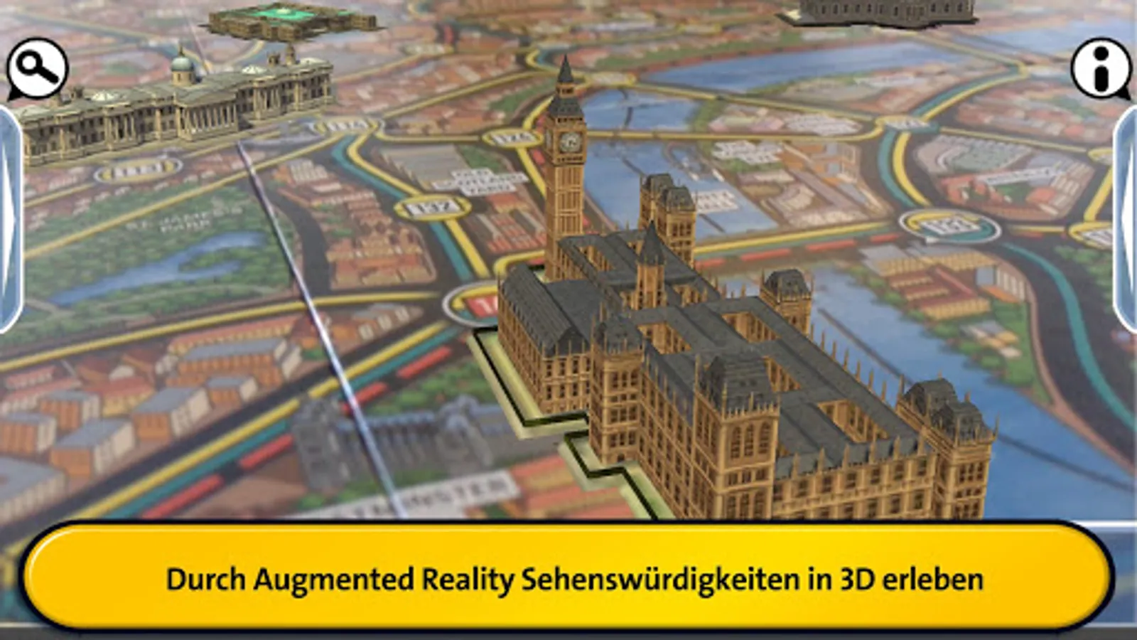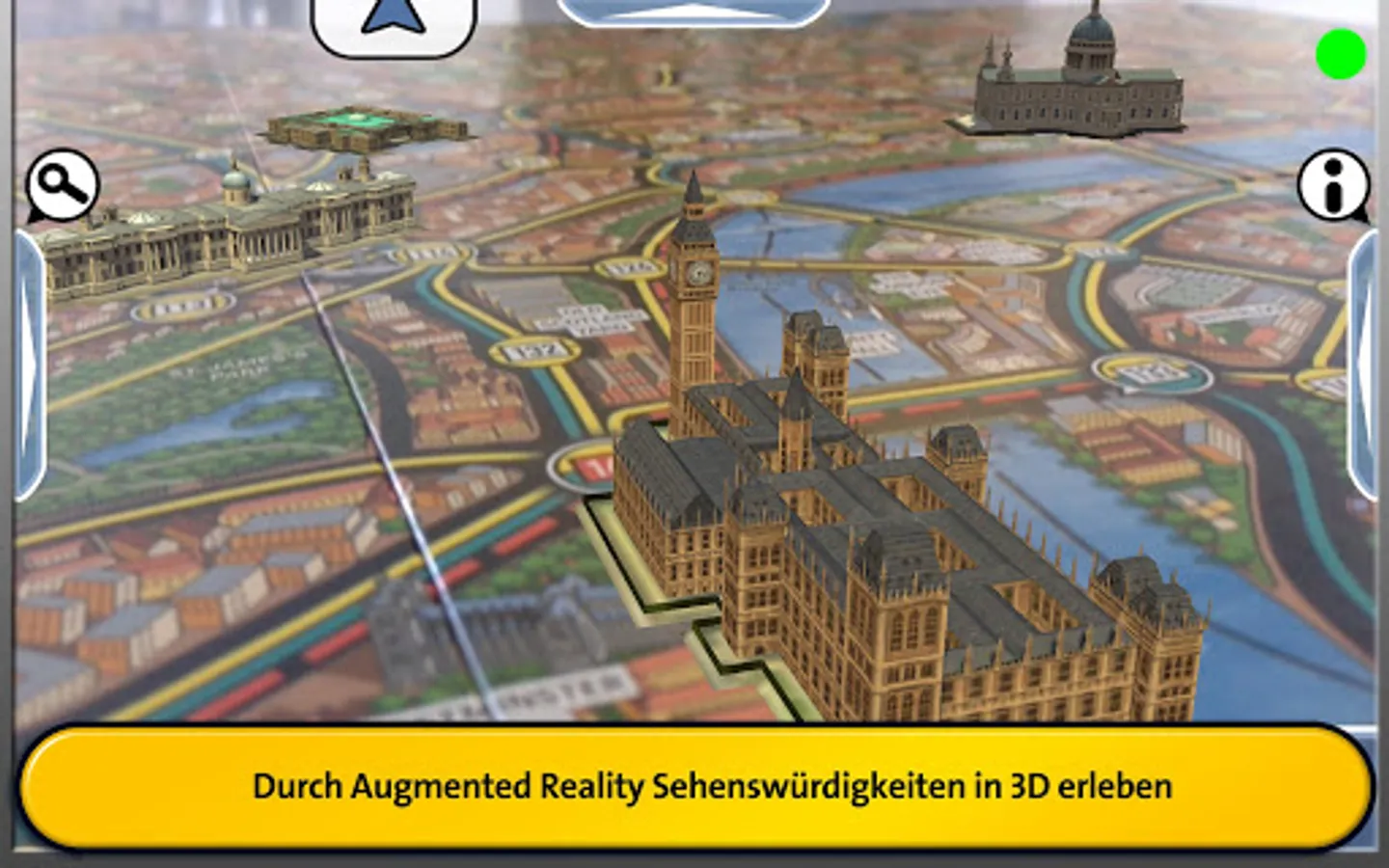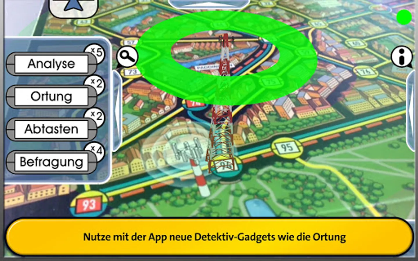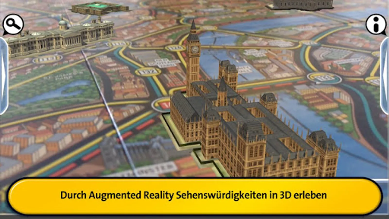 Together with the board game, this app offers a completely new and even more exciting way to play. The detectives are on the cutting edge of technology and even hotter on the heels of Mr X. They will find all the important information in the digital control centre: Which modes of transport has Mr X travelled by so far? When will he show himself again? What special actions can be used? You can select mobile phone tracking, for example, and point the smartphone or tablet’s camera at the four radio masts on the game board. Green, yellow or red radio waves will indicate whether or not Mr X is nearby. You can also question witnesses at important buildings across the city. The camera comes into play again, showing Tower Bridge, the Houses of Parliament and St Paul’s Cathedral in 3D. Witnesses will reveal whether Mr X is or has recently been there.