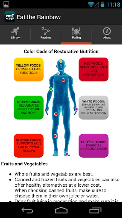 The exercises used in the NOFFS program are designed to replicate the activities Sailors conduct in their operational duties: lifting, pushing, pulling, and carrying. Developed as a complete fitness package, the fueling strategies allow you to determine your total caloric needs based on your personal goals, whether your desire is to lose, maintain or gain weight. The meal builder enables you to choose high-octane foods for each meal, populate your meal plan a week at a time, and email it to yourself.