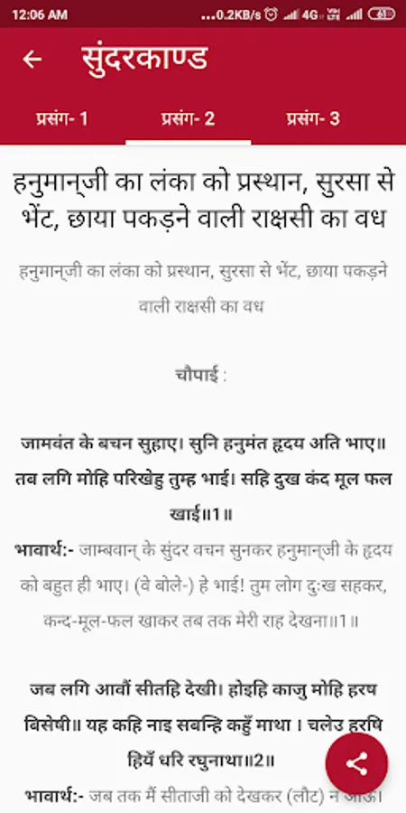 - Share Ramayan Quotes from within the app. You can share Prasangs - Shloks - Doha - Chaupai - Sortha directly from within the app to any of the platforms like WhatsApp, Facebook, GMail etc.