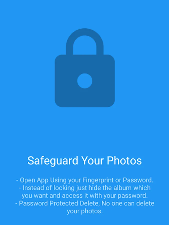 - Password Protected Delete: No one else other than you can delete your photos. When any one tries to delete your photos he can't delete it because app will ask Password Set By You at the time of delete.