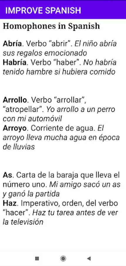 This is a basic application to improve Spanish. Its is a powerful tool to learn how to speak Spanish fluently.
