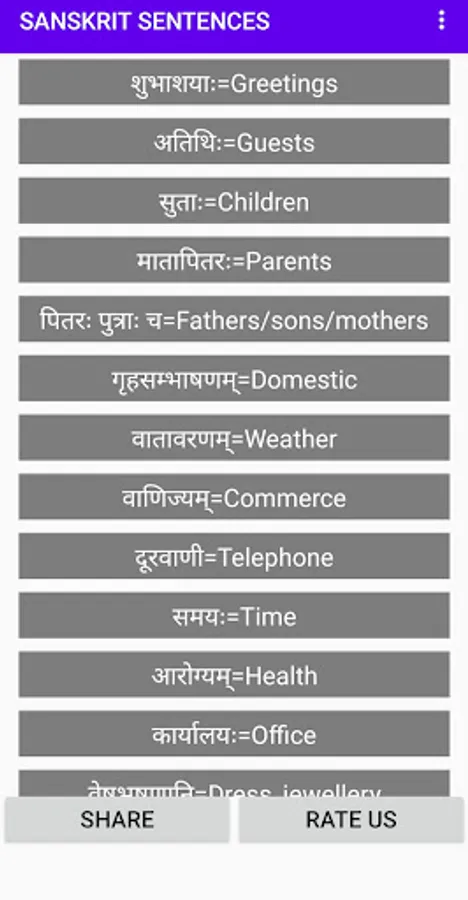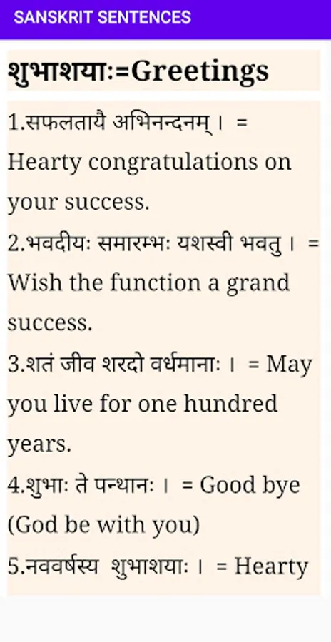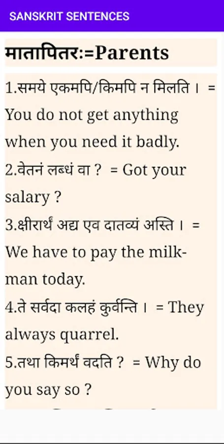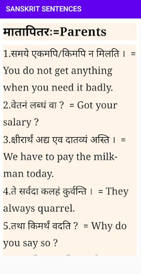 Sanskrit Sentences application having thousands of most common sentences in daily life and help to make sentences in Sanskrit.All the app's features are designed to help you learn to make Sanskrit sentences as well.