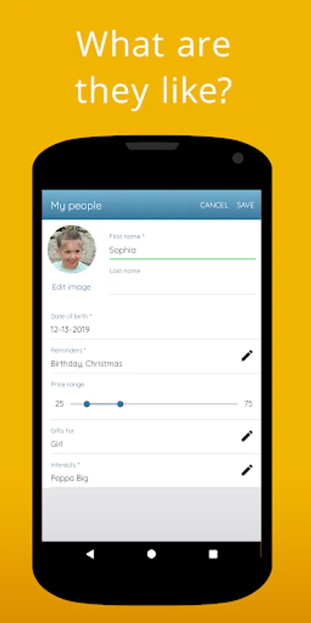 * Create profiles of people you don’t want to forget about. Create new profiles or select from contacts.