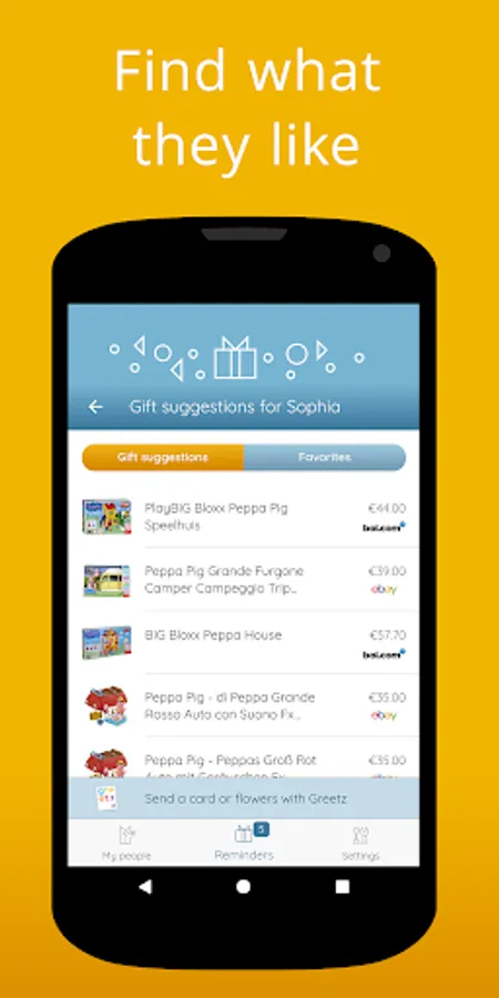 * Gift suggestions from multiple online retailers.