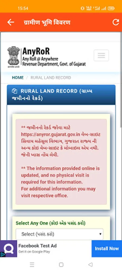 AnyRor - Gujarat Land Record 7/12 ROR Online View, Save, Print Land Record and Plot Map of Gujarat check online through this app.