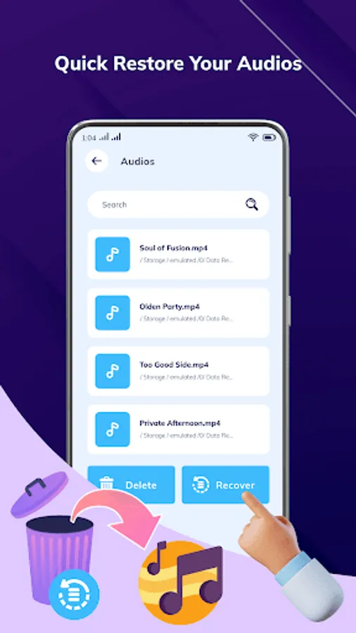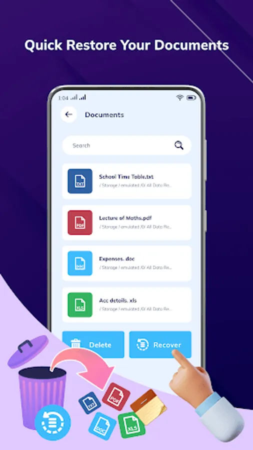 - You can restore deleted pictures, deleted videos, deleted audio files, deleted documents