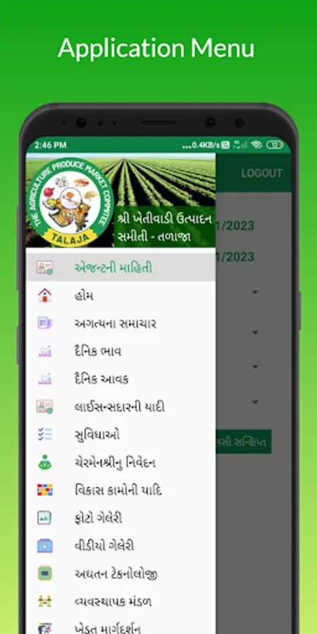 The application also provides various notifications on occasion and get user up to date with the APMC events.