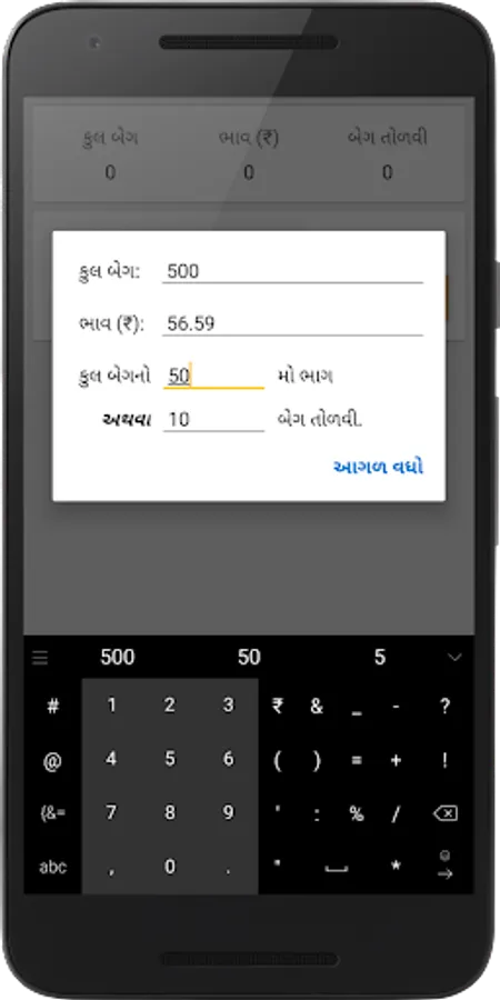 This application is developed for weight management. A user can enter weights of goods and at the end of the specific number whole summary will be generated which gives information about Net weight, Gross weight, Average weight and also gives prices according to it.