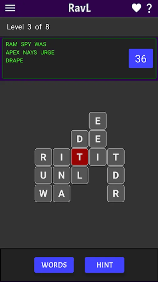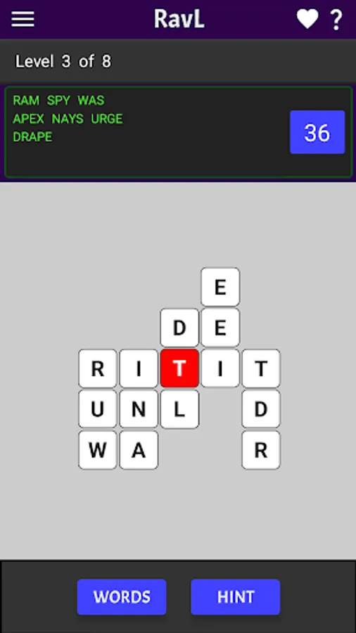 A fun challenge -- find the hidden words without hitting the red RavL square that makes it all come undone!