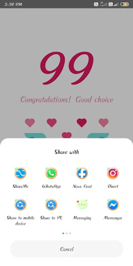 * Share your results, share button