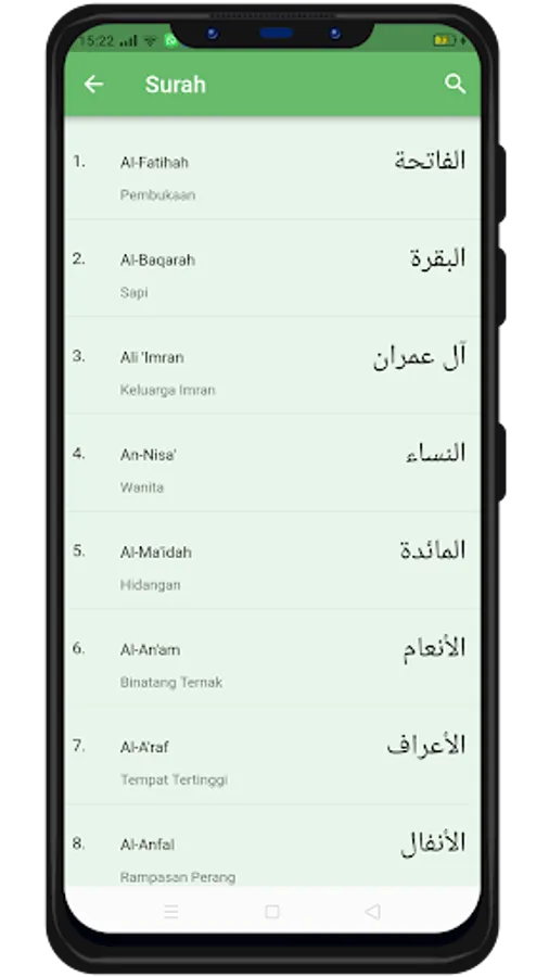 - Search by clicking the search icon. You can search the entire Quran, chapters or any surah.