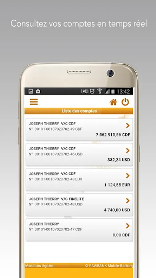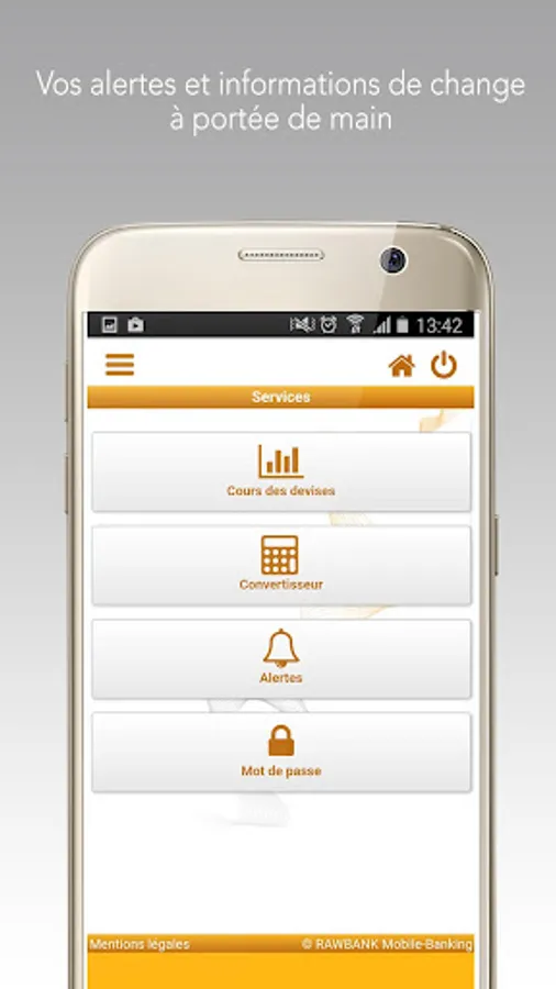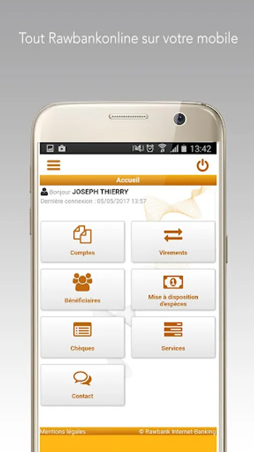 Manage your accounts with your mobile RAWBANKONLINE identifiers and find the following features: