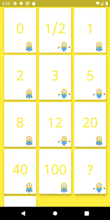 Each estimator is holding a deck of Poker cards with values like 0, 1, 2, 3, 5, 8, 13, 20, 40 and 100, which is the sequence we recommend. The values represent the number of story points, ideal days, or other units in which the team estimates.