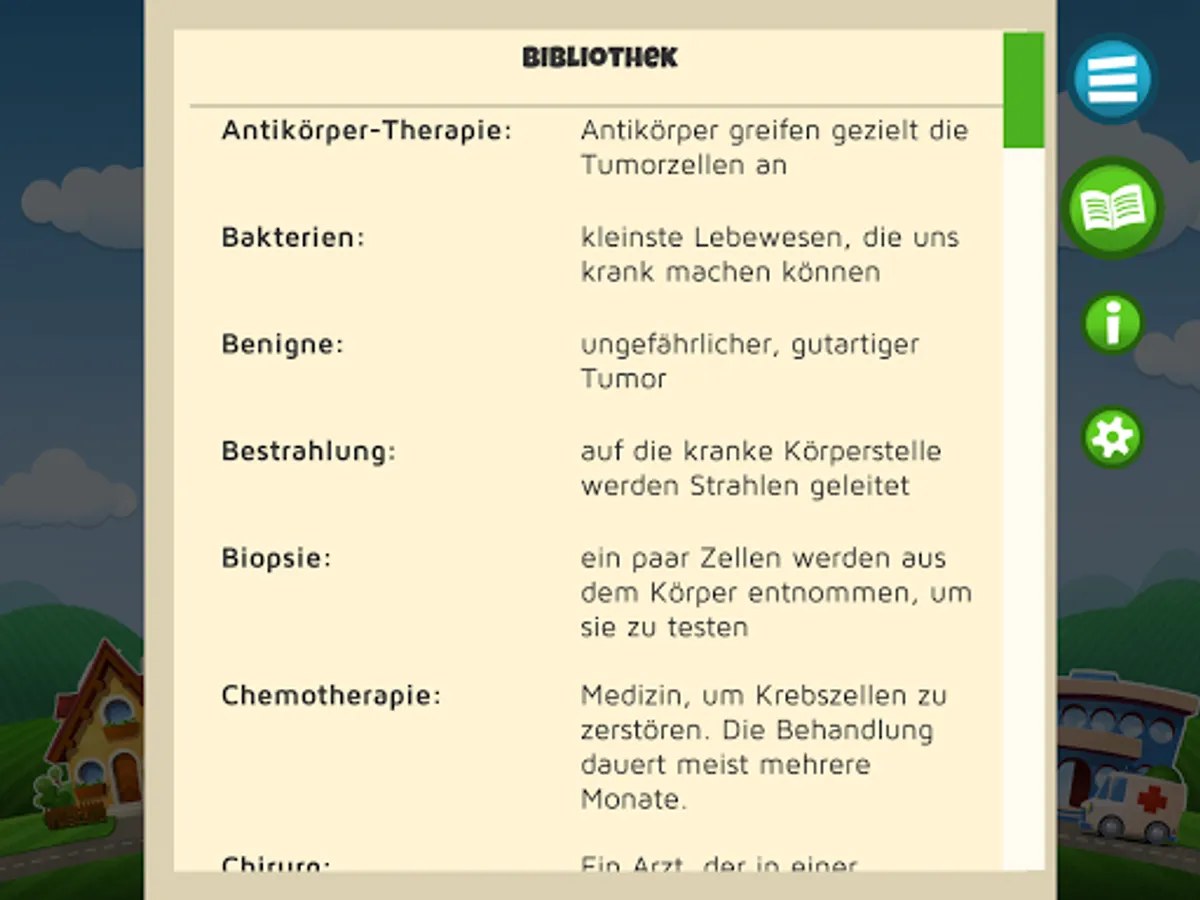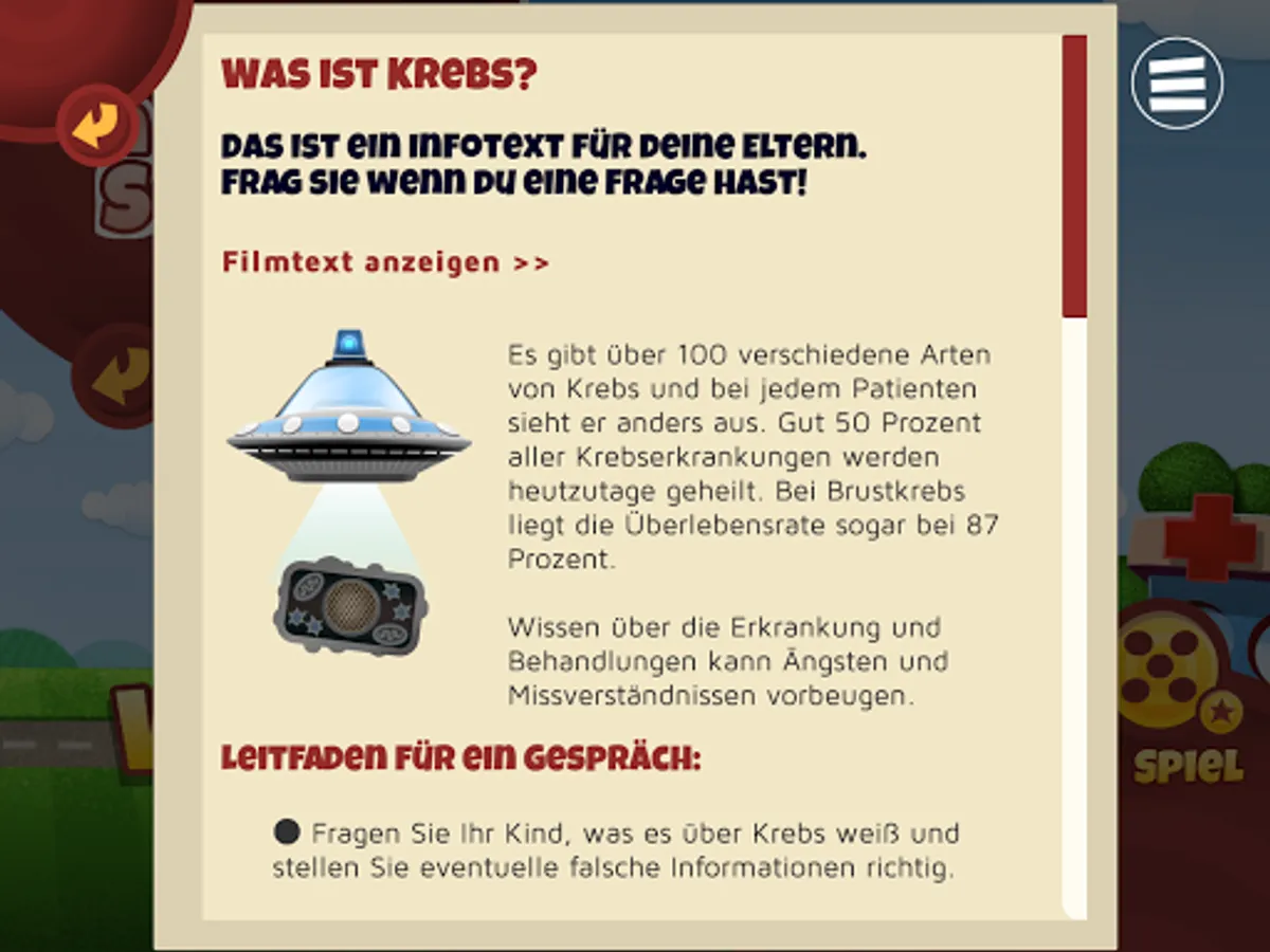 What is cancer? Is cancer curable? Is cancer contagious? I did something wrong? The app "The Magic Tree" should help to answer children with cancer patients relatives Most important questions about the Krankeit in a playful manner.