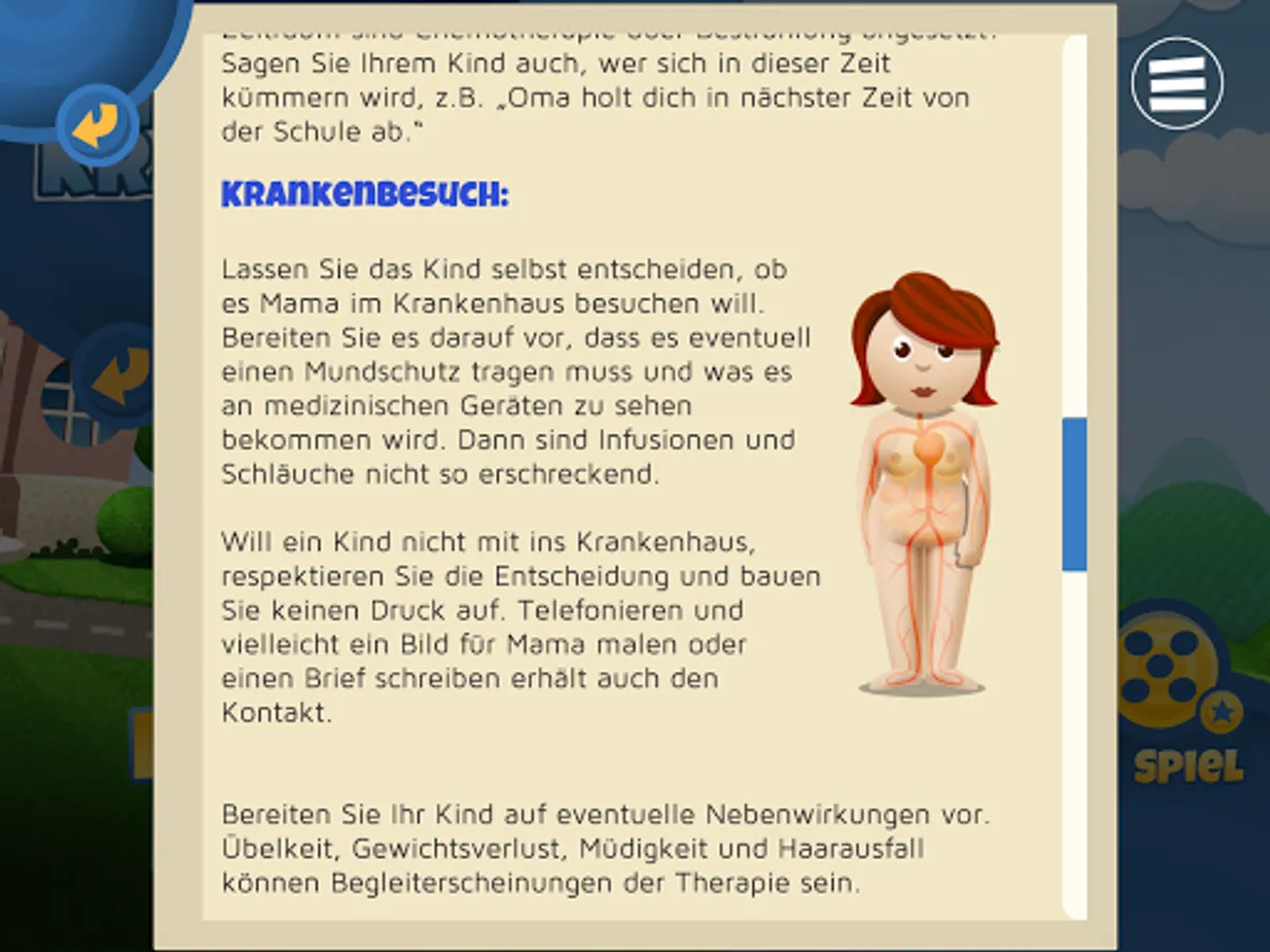 This world's first application for the parent-child communication helps parents to adjust with your child to the new situations. The association helping children with cancer parents eV has this developed in conjunction with experts and offers concerned parents to support.