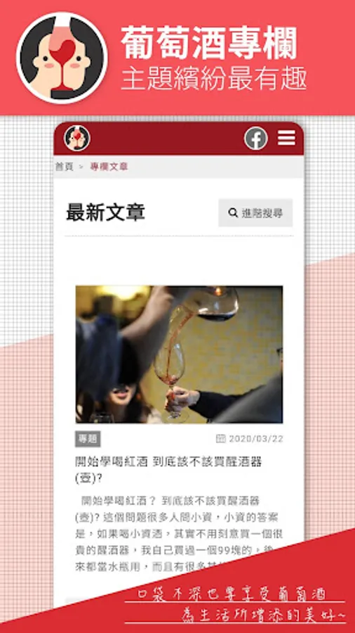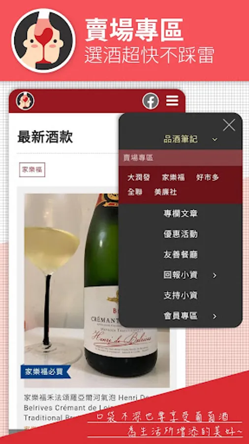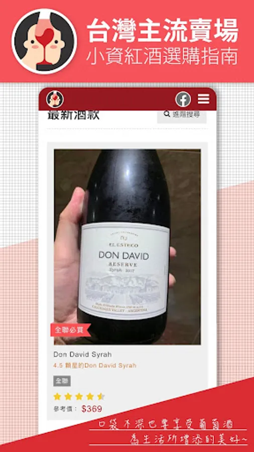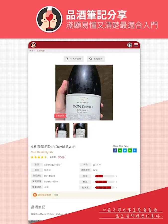 Facebook社群【小資男女的紅酒筆記本】 撰寫台灣主流賣場、超市、量販店葡萄酒品飲筆記,分享品酒心得超過1400筆,社群人數超過15,000人。